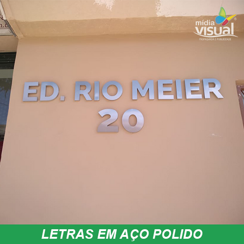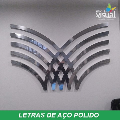 Aço escovado ou polido inoxidável ( qualidade 304 ) confeccionadas a base de recorte a laser, montadas com soldas 50×50, lateral ( espessura ) de acordo com o tamanho das letras, fixação a base de pinos central, orelhas com ou sem afastamento, base para colar com fita dupla face ou cola especial. Para espessuras maiores que 25mm o acabamento é feito com tinta PU automotiva, fixadas a base de fita dupla face da 3m ou cola especial, podendo também ser com pinos central.