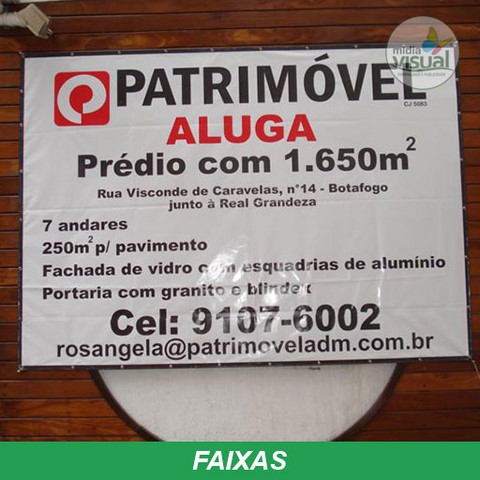 Impressão digital: em lona de grande formato de 3,20 Mts, com acabamento de ilhós com reforço de corda