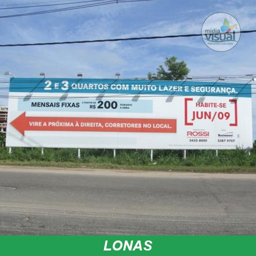 Impressão digital: em lona de grande formato de 3,20 Mts, com acabamento de ilhós com reforço de corda