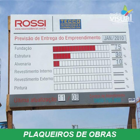 Confeccionada em chapa galvanizada, PVC ou alumínio, com laminação de adesivos vinil refletido, com letras e logotipo, feito em recorte eletrônico (Plotter ) adesivadas nas placas a base de mascara. A estrutura pode ser feita com sarrafo de madeira de 2×2 ou 3×2. ou também com estrutura metálica.